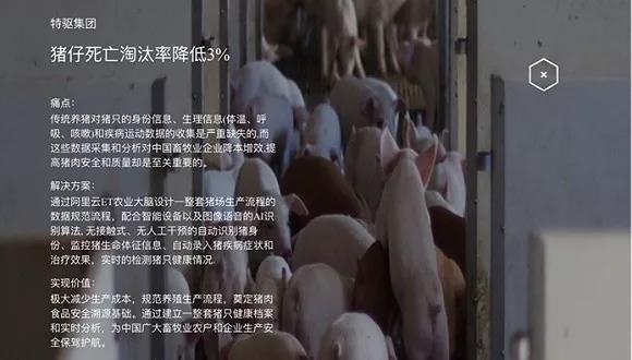實際上,阿裏(lǐ)早前已開(kāi)始布局智能養豬項目,2018年(nián)2月(yuè),阿裏雲與四川特驅集團、德(dé)康集團達成(chéng)合作,利用自家“ET大腦”涵蓋的視頻圖像分析(xī)、麵部識別(bié)、語音(yīn)識別、物流算(suàn)法等(děng)人工智能技術,對環境(jìng)中各項條(tiáo)件及畜牧自身(shēn)從懷孕到出生到成長過程每項(xiàng)數據監測,讓每一頭畜牧(mù)都有自己可供記錄、查詢及分析的檔案。 據阿裏雲官網顯示,引入人工智能技術後,每頭母豬每年的年產量會有所提高,且死淘率也會在一定程度上降低。