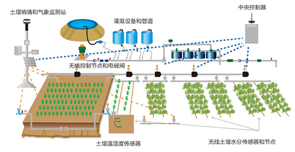 农业智能灌溉系统是集传(chuán)感器(qì)技术、自动控制技术、计算机(jī)技术、专家系统等多种高新技术于一体的智能灌溉(gài)控制系(xì)统, 系统可以根据植物(wù)可土(tǔ)壤(rǎng)种类、光照(zhào)数(shù)量(liàng)来优化用水量与精准施肥。既满(mǎn)足(zú)了植物生长(zhǎng)所需要(yào)的(de)水肥,提高了水(shuǐ)费的利(lì)用率,又使地下水 免受肥料与化学药剂的污染(rǎn)。农业智能(néng)灌溉系统真正做到(dào)了对植物所需水分与养分进(jìn)行均衡、适(shì)量、精准的控制(zhì)和供应。